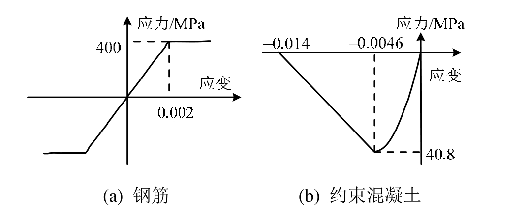 图4 钢筋和混凝土本构关系