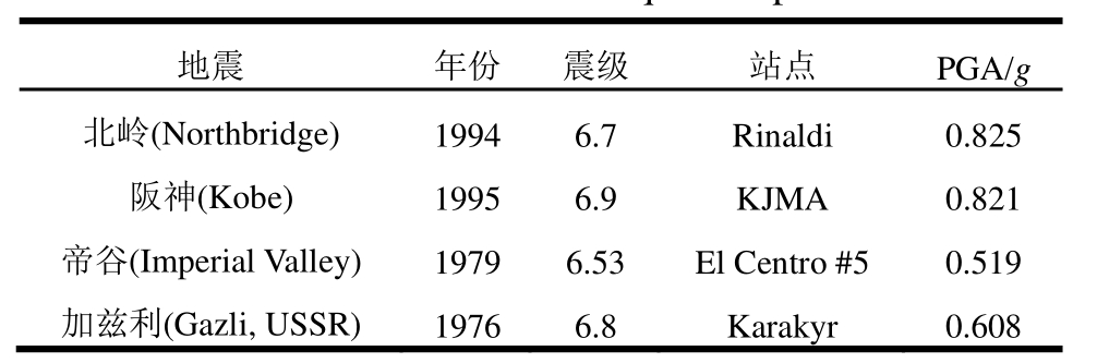 表4 选取的地震动