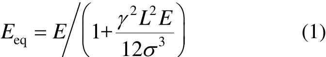 式中:Eeq为索的等效弹性模量;E为索材料的弹性模量;γ为索的容重;L为索的水平投影;σ为拉索的拉应力。研究表明Ernst公式满足式(2)时,具有足够高的精度[13]: