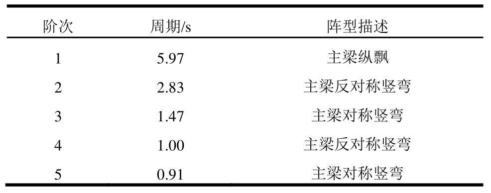 表3 斜拉桥动力特性