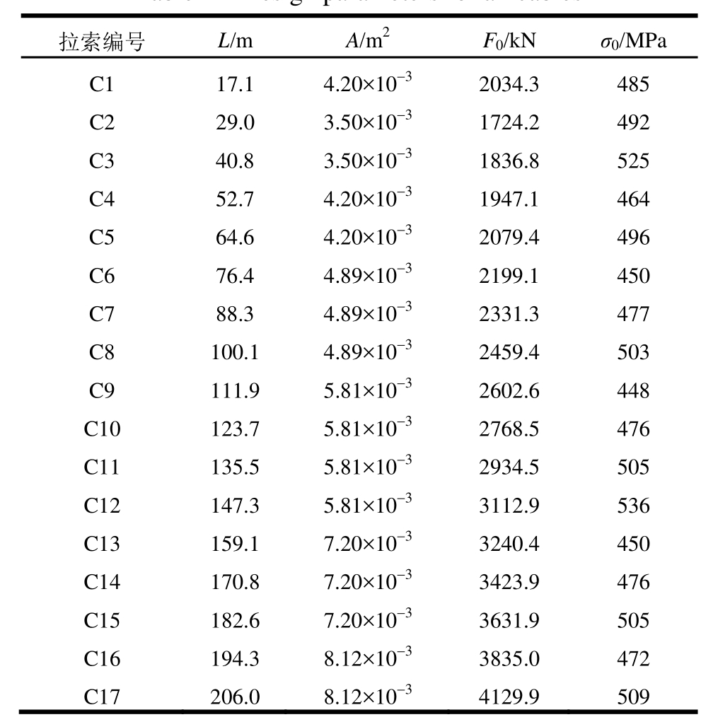 表1 拉索设计参数