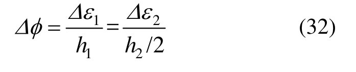 而 ∆ε =∆ε1+∆ ε2=∆ φ(h1+ h2/2)、h1=h3,当拉、压区应变差相等时可得到下式:
