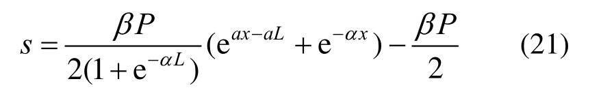 引入相应的边界条件s(x=0)=0和ds/dx(x=l/2)=0,可求得 3种常见荷载作用下钢-竹界面相对滑移量的理论解,分别列于如下。