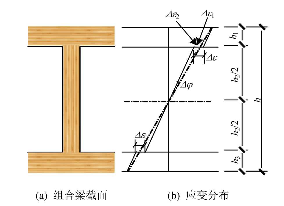 3) 组合梁中的上、下翼缘竹板和腹板截面分别符合平截面假定,且具有相同的曲率。