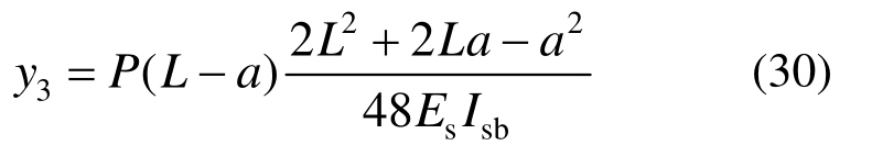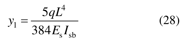 考虑滑移效应的钢-竹组合梁跨中挠度可在换算截面法求得的挠度基础上叠加因界面滑移引起的附加挠度而得。即: