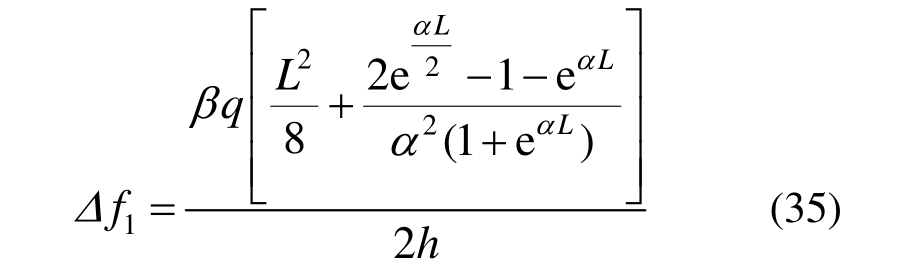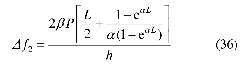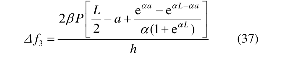 将式(28)~式(30)及式(35)~式(37)代入式(38)即可得钢-竹组合工字形梁在 3种常见荷载作用下基于界面滑移效应的跨中挠度计算表达式。不过直接利用该公式实际求解时的计算比较繁琐,为了应用方便,进一步对其进行简化。以跨中集中荷载为例,可对式(36)进行如下变换: