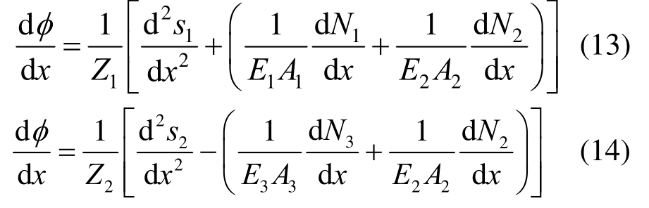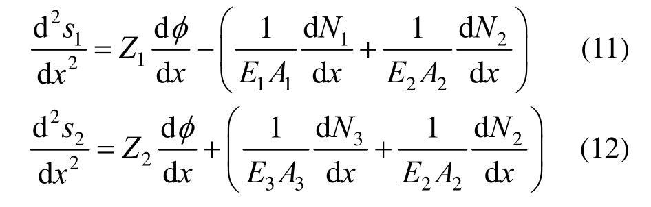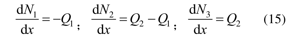 沿x方向对隔离体1、2、3分别列平衡方程后整理可得下列关系式: