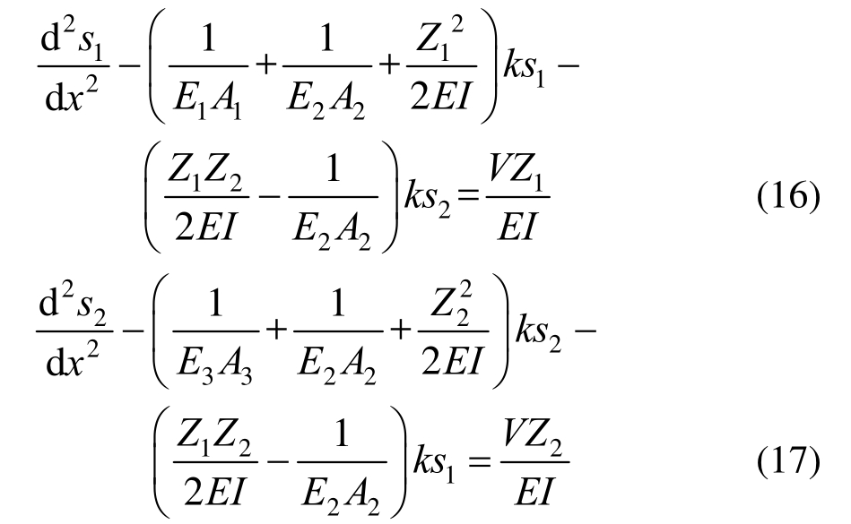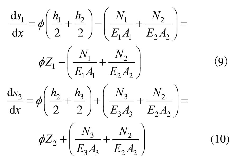 式中:N1、N2、N3分别为隔离体1、2、3的轴力;s1、s2分别为受压区、受拉区界面滑移量;A1、A2、A3分别为隔离体1、2、3的横截面面积。