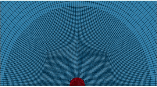 对于边界条件的设置,靶体外圆表面、底面设置为无反射边界条件。在弹体和靶体的两个对称面xoz与yoz上施加对称约束。