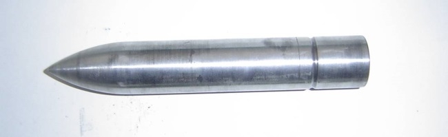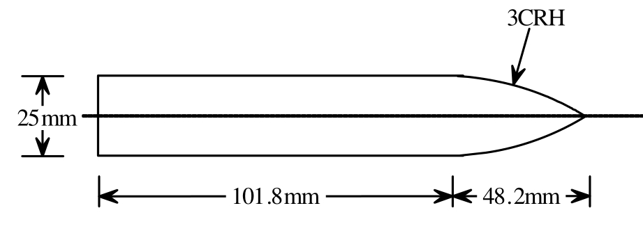 试验采用 Q-25型弹道滑膛炮发射弹体,装置如图1所示。弹体为新型缩比钻地弹,弹体材料为DT300高强度合金钢,抗拉强度为 1810 MPa,内部装填物为高分子惰性材料,弹体直径25 mm,长径比为6,弹壳壁厚与弹径比为0.15,弹体质量约340 g,如图2所示。由于弹体强度高、抗变形能力强,在试验过程能保持较好的完整性,可以视为刚体。弹体速度在500 m/s~850 m/s区间,属于高速侵彻,1000 m/s以上属于超高速侵彻。本文主要研究UHPC在高速侵彻范畴内的损伤破坏机理,因此试验过程中弹体的速度设计为500 m/s和850 m/s两个速度。通过装填不同火药用量,调整弹体侵彻速度。