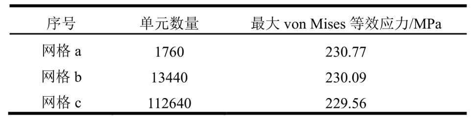 表8 不同网格数量下的圆筒最大von Mises等效应力