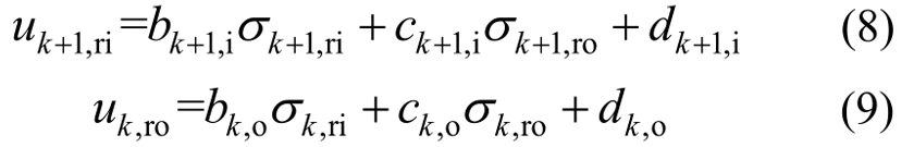 由第k+1层圆筒内壁的位移量与第k层圆筒外壁的位移量的变形协调关系可知: