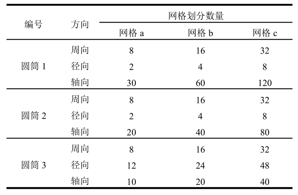 Table 7 Three grid systems with different density grid densities for each cylindrical layer