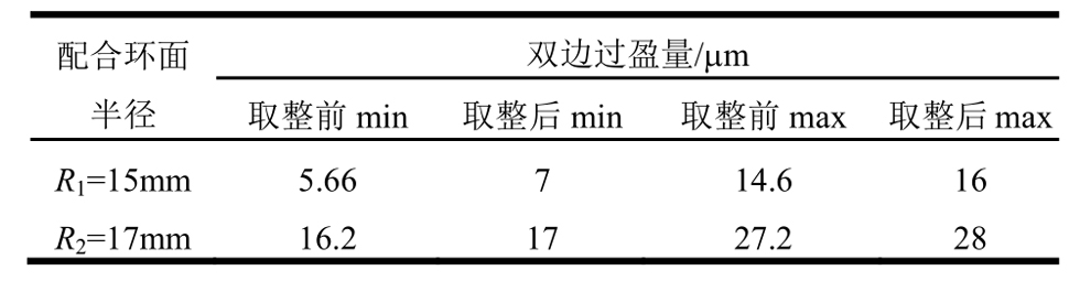 表6为取整前后的名义半径下的各个圆筒间的最小单边过盈量和单边最大双边过盈量,据此可以确定圆筒壁的名义尺寸和极限偏差,为保证不松脱,最小过盈量可适当向上取整,这里可选择的配制配合尺寸分别为孔