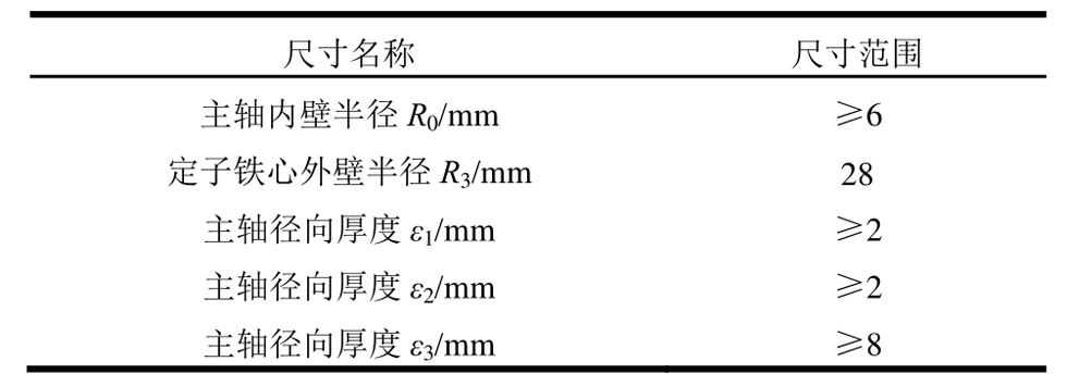 表2 各层圆筒的径向尺寸及其厚度范围约束