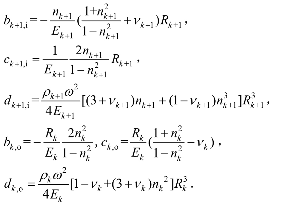 2)第k层旋转圆筒材料参数为(Ek,vk,ρk),许用应力为![]()