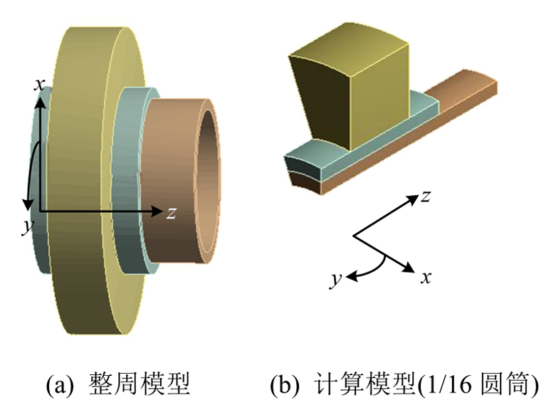 Fig.5 Whole geometry model and computational model of the rotating shrink-fitted cylinders
