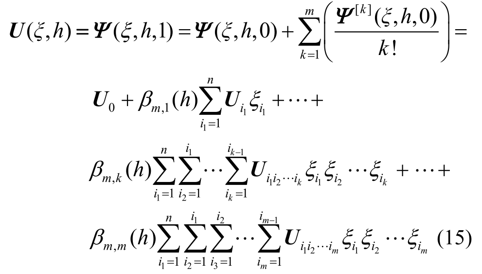 对于一含n个随机变量ξ={ξ1,ξ2,…,ξn}的系统,对于其静力位移响应的同伦级数表达式(15),此级数表达式中除零阶项U0以外的任意一项均可表示为