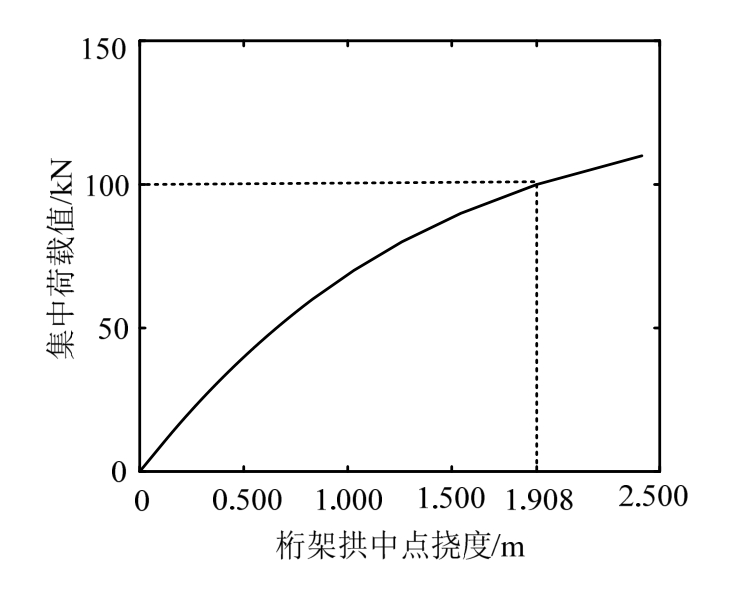 图6 确定性桁架拱结构中点的荷载位移曲线