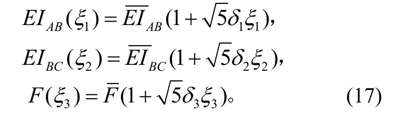 算例1.如图1所示,一6 m长的变截面悬臂梁,AB和BC两段长均为3 m,在梁的端部有一随机集中力荷载F。考虑梁抗弯刚度和梁端集中力的随机性,AB和BC两段抗弯刚度以及集中荷载的具体表达形式如式(17):
