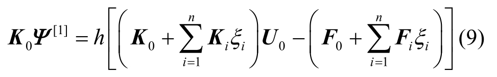 2) 利用式(6)构造零阶变形方程,并按照2.1节中的方法推导得到结构位移响应的同伦级数表达式中的各阶确定性向量系数,并按2.2节方法进行降维和降阶处理,一般取单变量同伦级数(HSFEM-1)和双变量同伦级数(HSFEM-2);