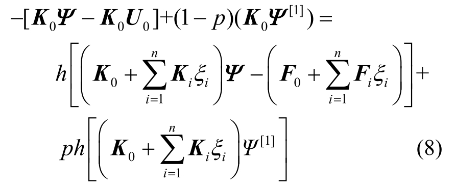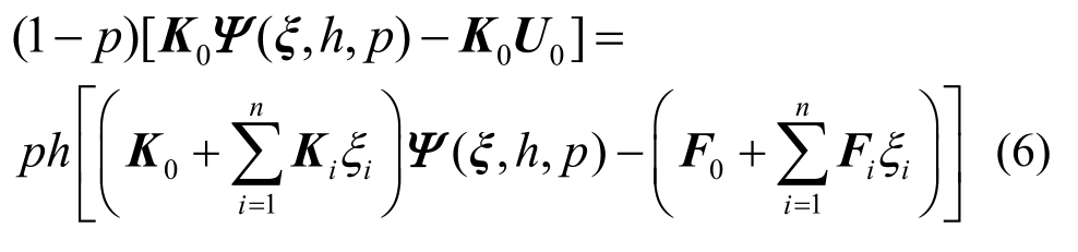 1) 构造形如式(4)的随机刚度矩阵,例如采用Karhunen-Loéve展开来离散结构的弹性模量随机场;采用式(5)来表示随机外荷载;