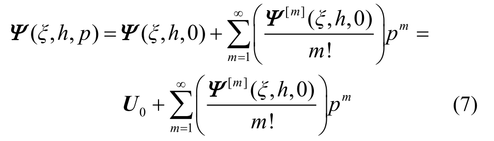 在构造了零阶变形方程后,根据已知信息,若将Ψ(ξ,h,p)做关于参数p的麦克劳林展开有: