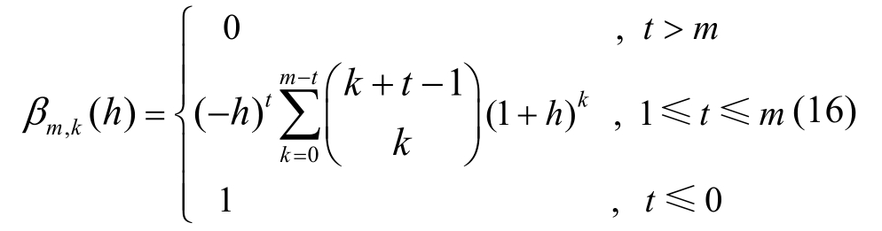 式中,βm,k(h)为: