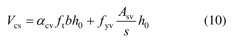 我国现行《混凝土结构设计规范》(GB 50010―2010)[19]中钢筋混凝土梁斜截面受剪承载力Vcs计算公式如下: