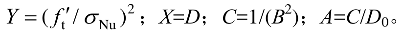 为混凝土抗拉强度,这里采用混凝土材料劈拉强度模拟值2.01 MPa。将式(4)转化为线性方程: