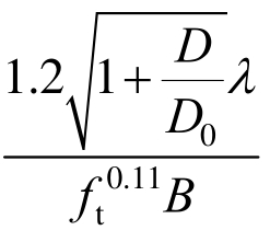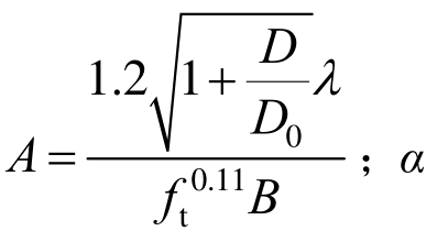 基于以上两点认识,在Bažant材料层次尺寸效应理论公式的基础上,考虑剪跨比及配箍率两种因素对梁抗剪强度及尺寸效应的影响,建立了构件层次上的钢筋混凝土梁抗剪强度尺寸效应理论公式,如下: