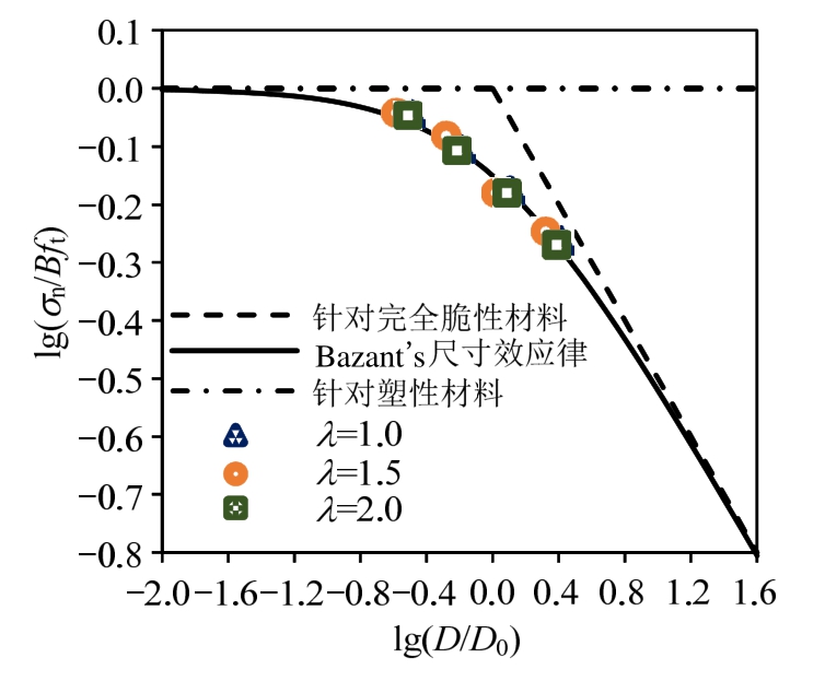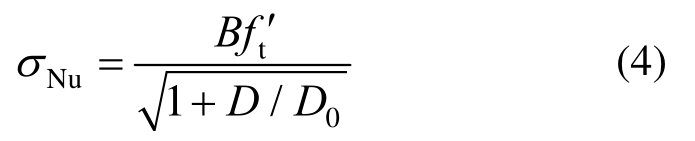 Bažant基于断裂力学理论提出了适用于混凝土材料的尺寸效应理论公式[13]: