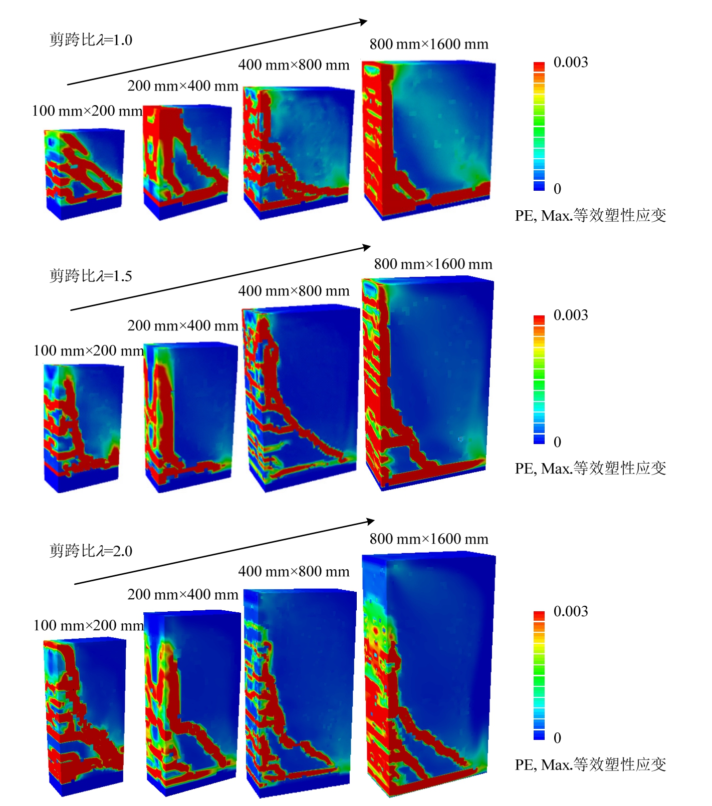 图3 不同剪跨比不同尺寸悬臂梁最终破坏形态