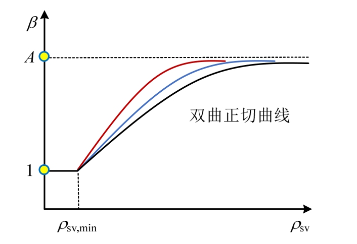 如图13所示,当ρsv>ρsv,min 时,β成为1条从1开始无限趋向于