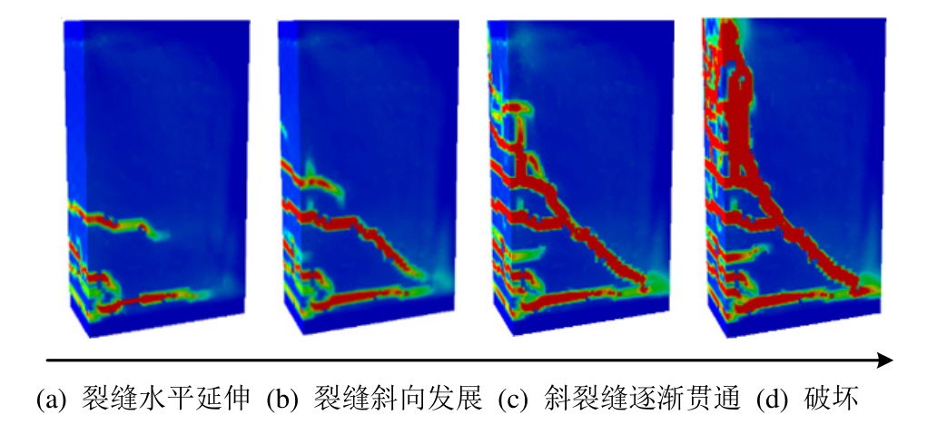 Fig.4 Crack process of the cantilever beam with a height of 800 mm and a shear span ratio of 1.5