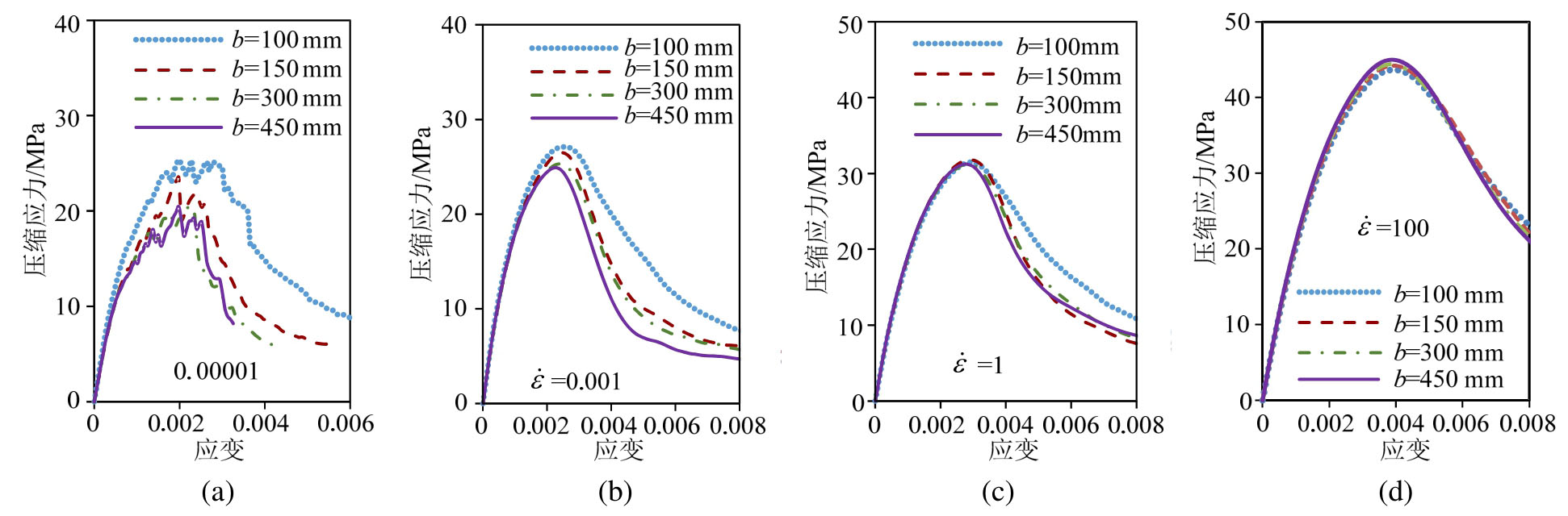 取在应变率10-5 s-1作用下宽度b=100 mm试件的动态压缩强度,即
