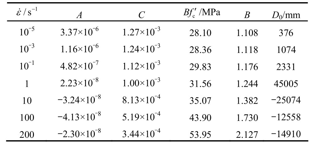 式中:需要说明的是,B、D0为“准静态”加载下通过回归分析得到的两个经验系数;