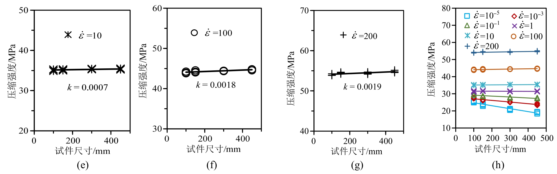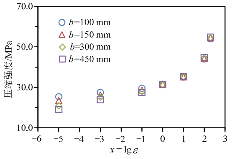 cr,即在该应变率下,动态压缩强度与试件尺寸无关,尺寸效应被完全抑制。