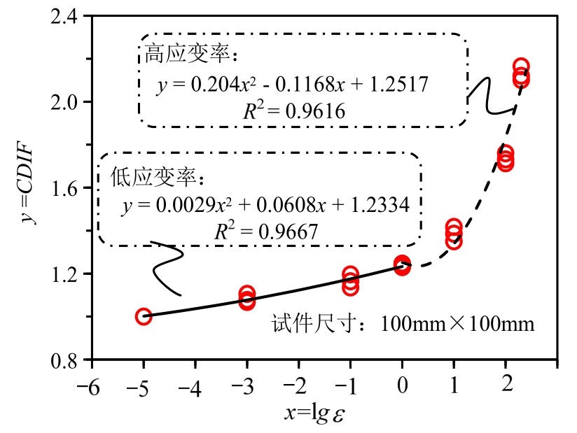 =25.37 MPa,其动态强度放大因子CDIF可详见拟合式(10)和式(11)。