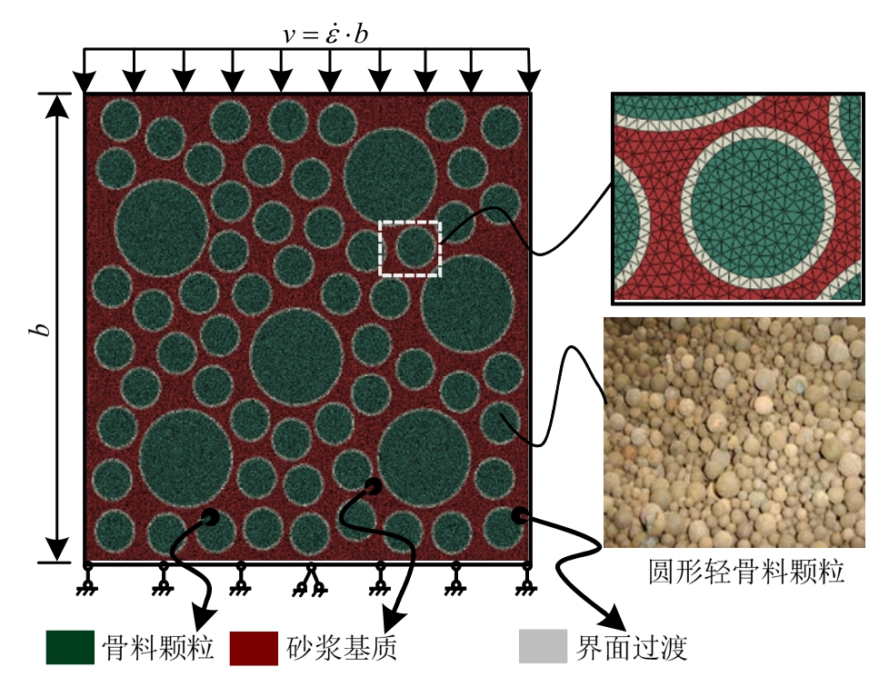 本文拟在上述研究工作的基础上,借助细观尺度数值模拟方法,以轻骨料混凝土为研究对象,研究其在动态单轴压缩作用下的破坏行为及尺寸效应规律,从细观角度揭示其破坏机理,进而建立对应的“静、动态统一”的尺寸效应律理论。