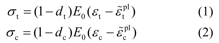 式中:σt为拉应力;σc为压应力;εt为拉应变;εc为压应变;E0为初始弹性模量;