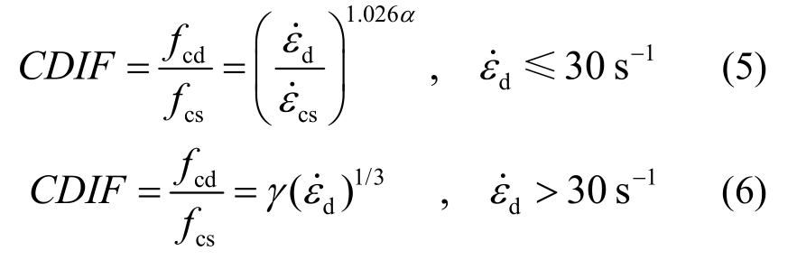 CEB规范[26]中用来表征混凝土动态抗压强度提高因子(CDIF)的公式为: