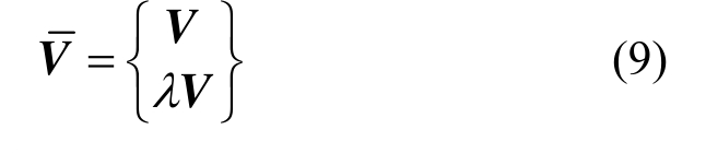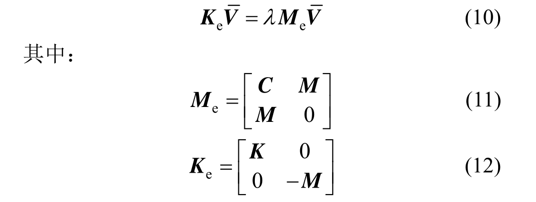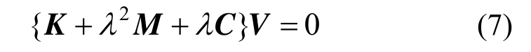 其中:K、M和C分别称为刚度矩阵、质量矩阵和阻尼矩阵,其计算方法可参照文献[8]得到;V为位移列向量: