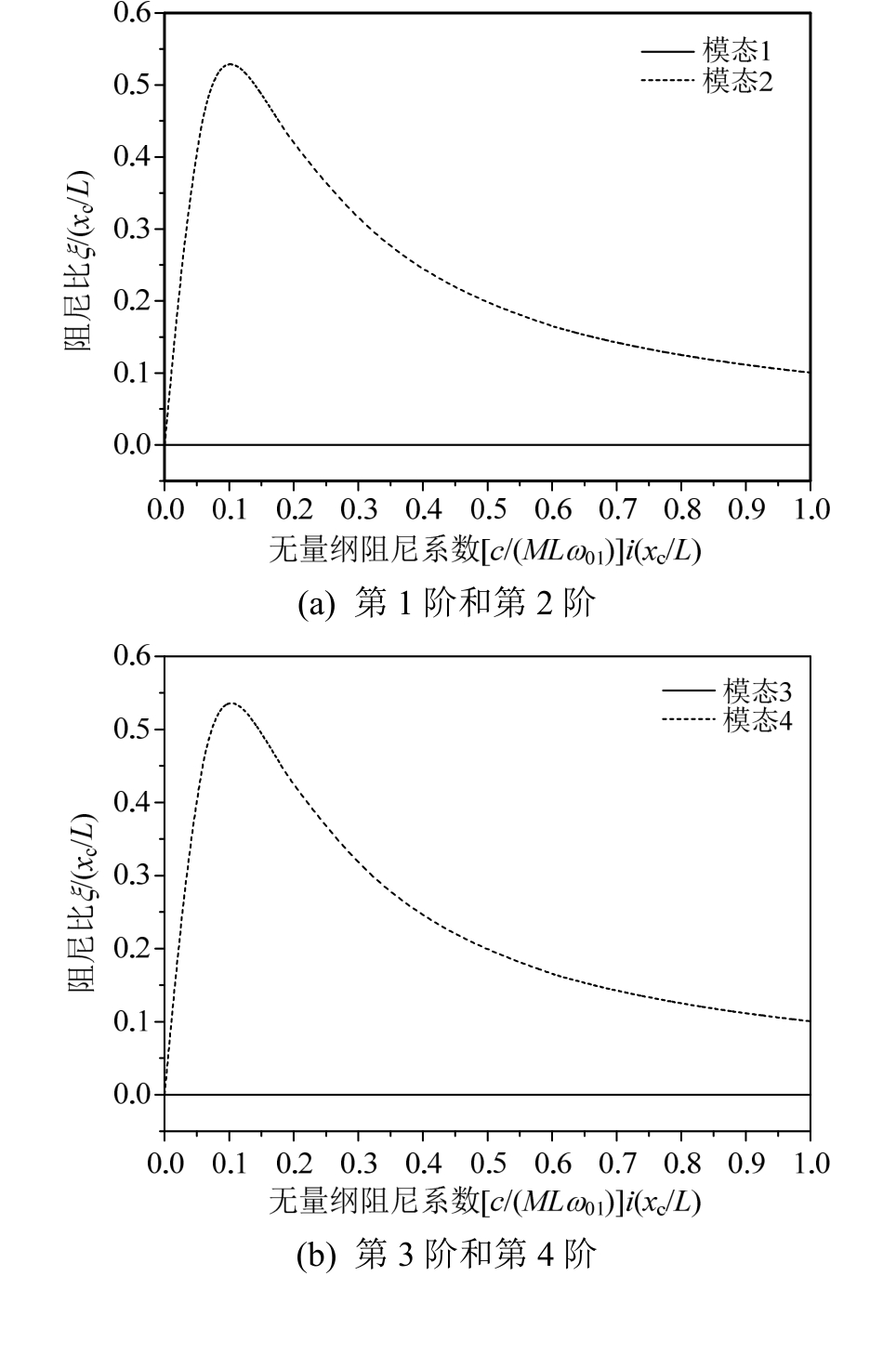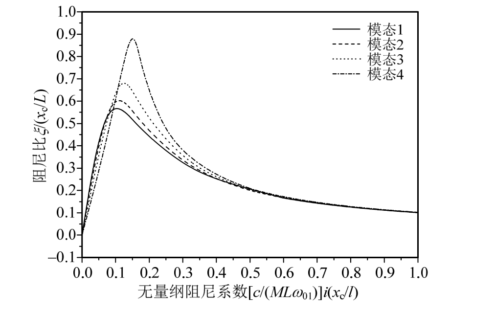 图4给出了xc/L=0.05、无量纲阻尼器阻尼系数