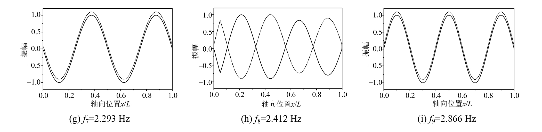 图4 单个阻尼器时吊索前9阶模态的振型(xc/L=0.05)