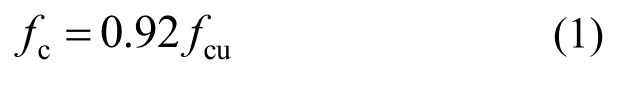 上述回归式(1)和式(2)的拟合度R2分别为0.96和0.92(见图8),预测结果与拟合数据点吻合良好,应用该公式对本文试件的轴心抗压强度进行计算,得到计算值与试验值的比值如表4所示,均值和方差分别为1.01和0.006,预测结果的准确性满足要求。