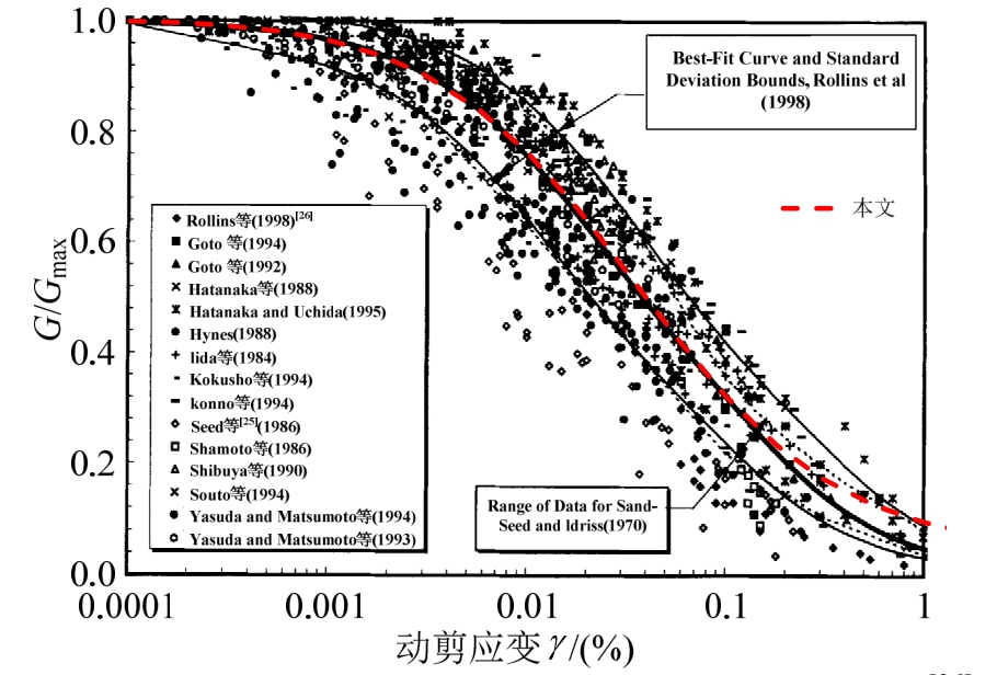 图4 碎石材料G/Gmax~γ曲线(图片来源:Rollins等[26])