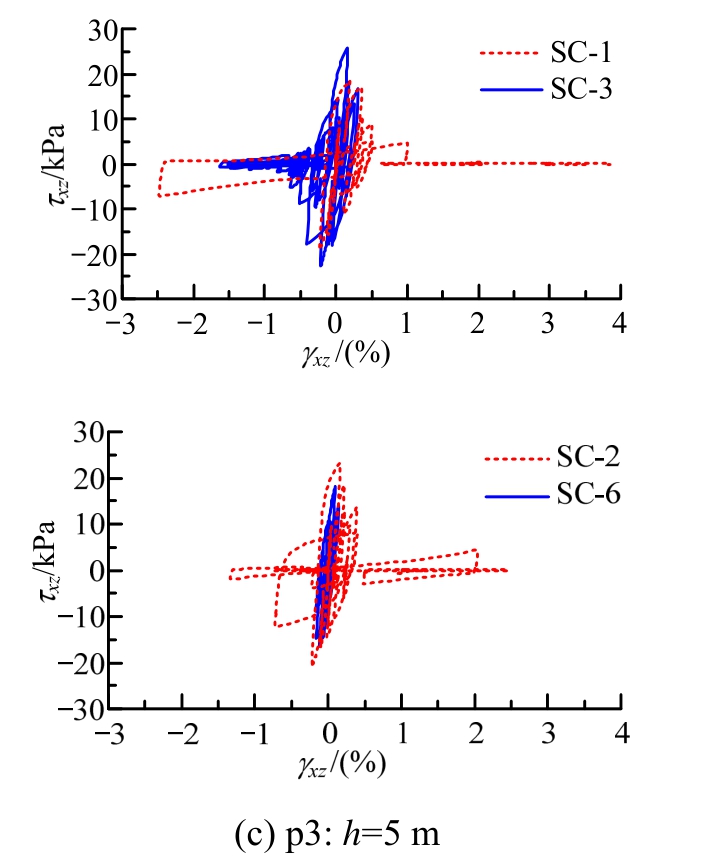 图14 剪应力-剪应变响应(p3:h=5 m)