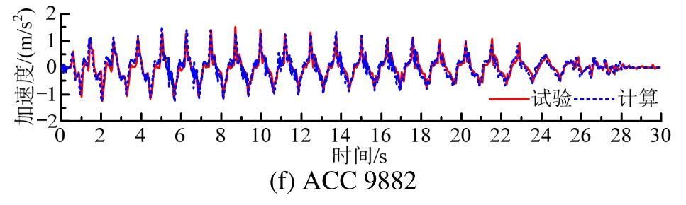 图7 加速度响应试验与数值模拟对比