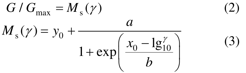动剪切模量比[25―26]和以Sigmoidal函数表示的剪切模量衰减曲线[27]表示为: